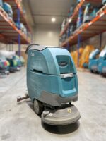 De Tennant T300E is een industriële, batterij-aangedreven zelfrijdende schrobmachine met geïntegreerd zuigsysteem, ontworpen voor intensief onderhoud van grote vloeren in magazijnen, productiehallen, logistieke centra en grote commerciële ruimtes. Met sterke borstels en efficiënt wateropnamesysteem reinigt de machine effectief vuil en laat ze de vloer schoon en vrijwel droog achter in één doorgang.